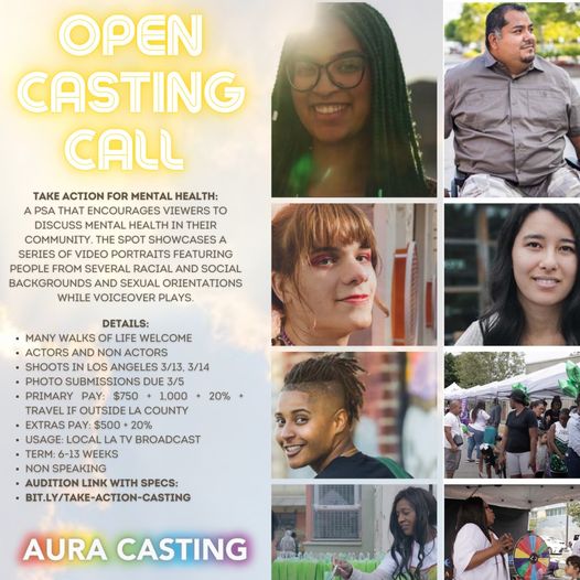 Take Action For Mental Health is casting nationwide to find individuals for a PSA that encourages viewers to discuss mental health in their community.