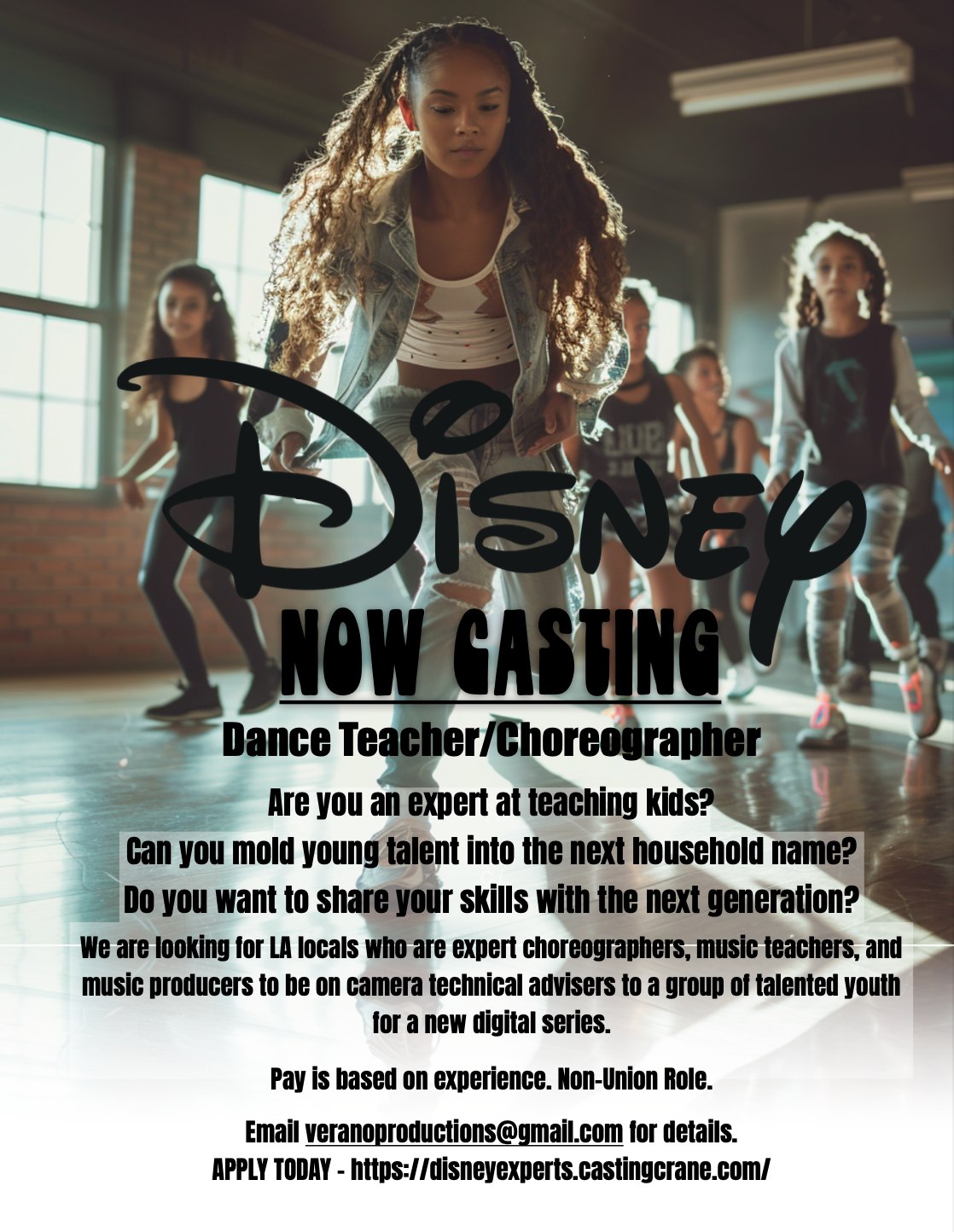 The Disney casting casting directors are looking for people that can teach and mentor kids that are looking into becoming actors, singers and dancers. Specifically, they are seeking people who can teach their skills to the next generation of performers for a brand new Disney+ show. Can you be an on-camera mentor? If so, read on because Disney is holding auditions, online auditions for Dance Teachers, Choreographers, Music Teachers & Music Producers for a new digital Disney series.