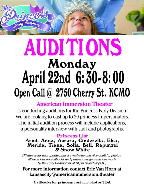 AIT in Kansas City, Missouri is looking to cast up to 20 Disney princess impersonators to portray Ariel, Anna, Aurora, Cinderella, Elsa, Merida, Tiana, Sofia, Bell, Rapunzel & Snow White. The initial audition process will be conducted as an open call which will include application, personality/ Disney knowledge interview, and photographs.