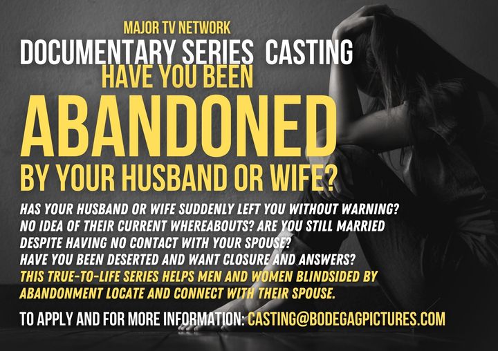 An acclaimed television production company is currently seeking people who have been suddenly deserted or abandoned by their spouse to take part in a transformative, documentary television series that will help bring closure and answers.