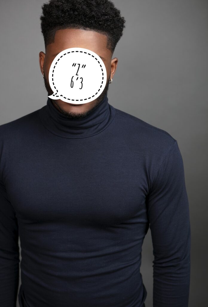 “Z”: 6’3 (AA MALE: BROWN SKIN TONE)