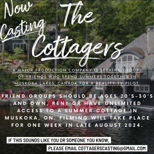 We’re seeking friend groups in their 20s to 30s who own, rent, or have unlimited access to a summer cottage in Muskoka, ON.