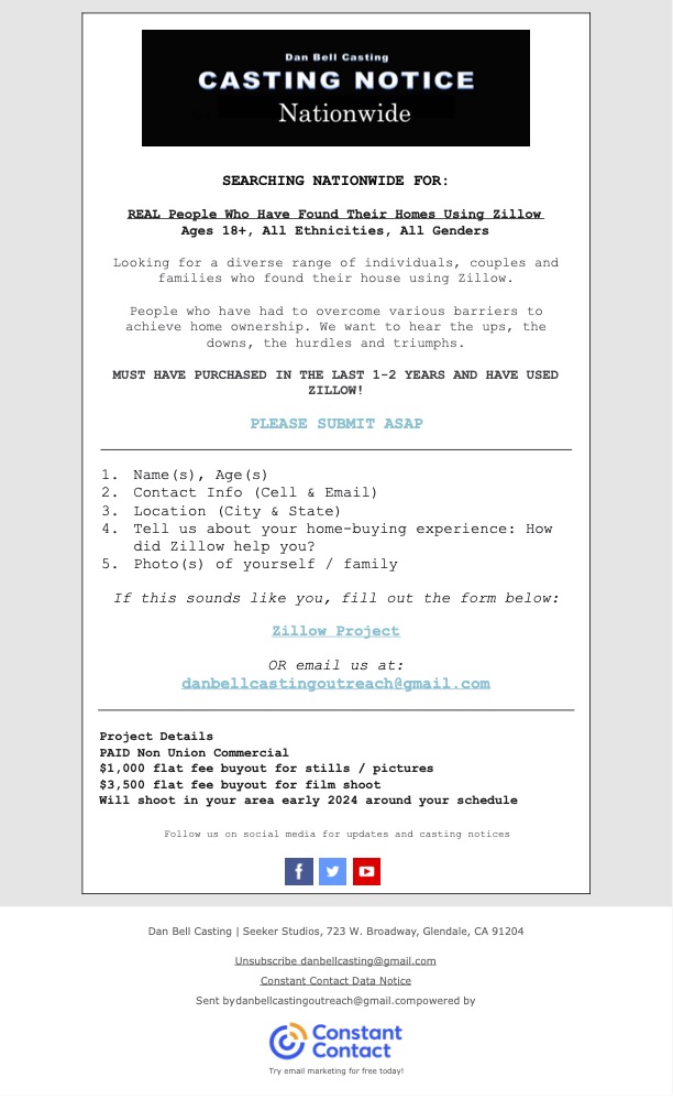 You can reach me at danbellcasting.daniel@gmail.com or our office at (818)-844-8900 for more info, I’ve attached the flyer below! Please include ages and the Zillow listing!