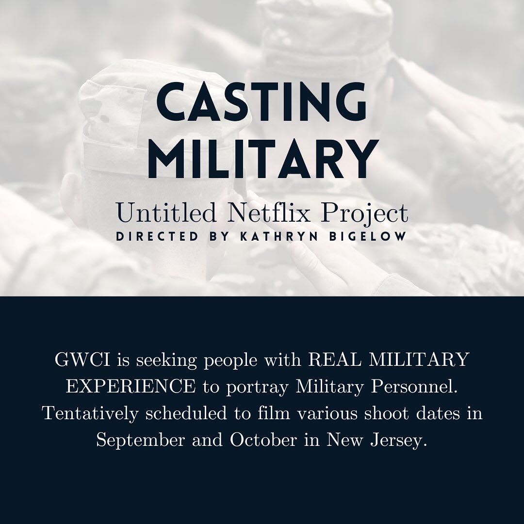 GWCI is seeking people with REAL MILITARY EXPERIENCE to portray Military Personnel. Tentatively scheduled to film various shoot dates in September and October in New Jersey.