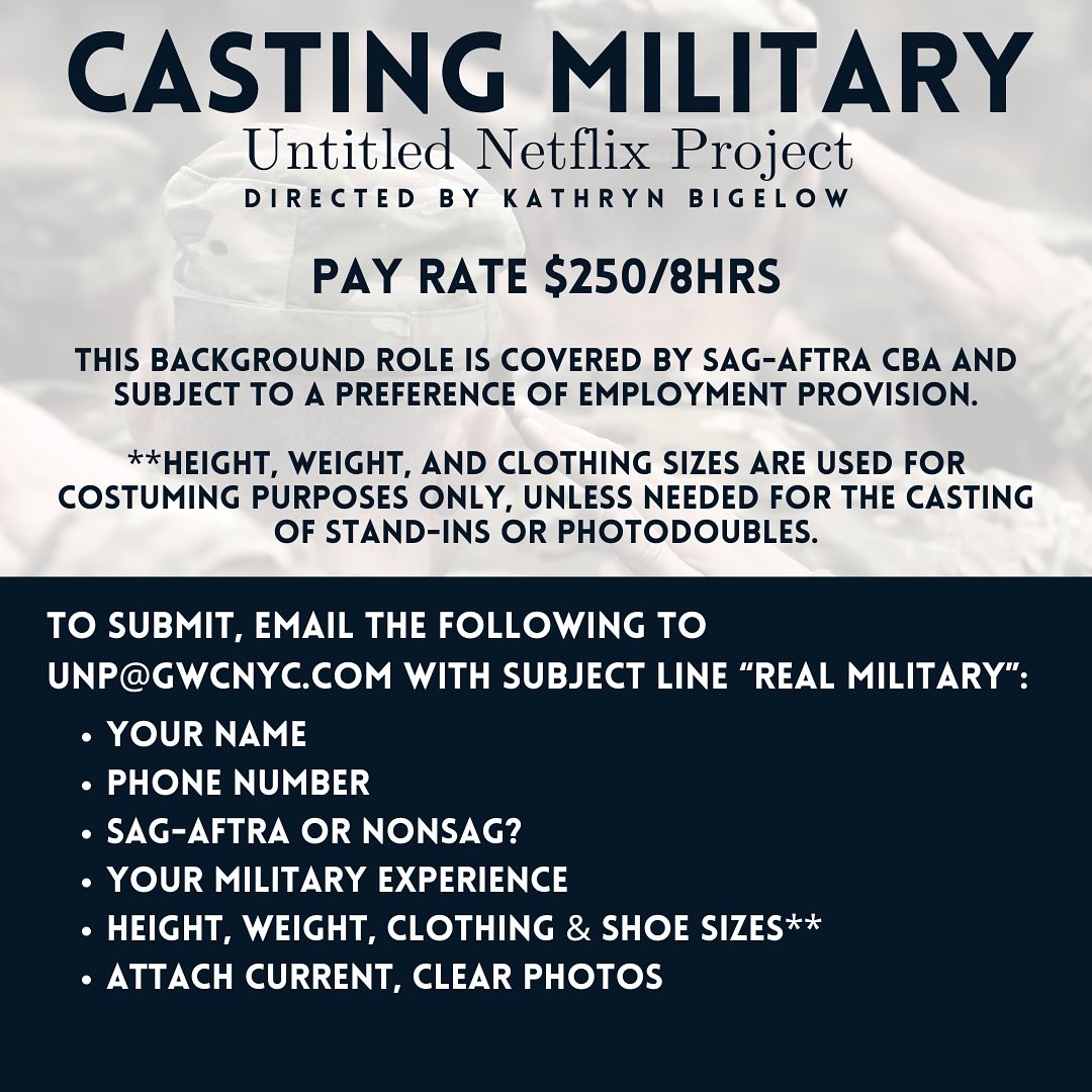 New Netflix project is filming in New Jersey and is casting for Military background actors.