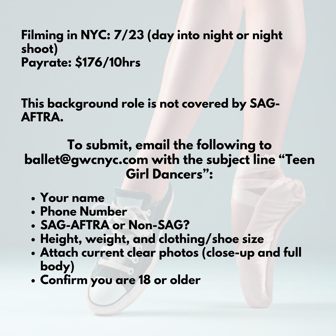New Amazon project is filming in the New York City area and they have a casting call out for ballet students to appear in an upcoming scene in a small paid role.