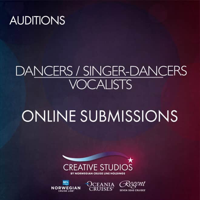 Norwegian Cruise Line is currently accepting online submissions for Male-Identifying Dancers, Female- and Male-Identifying Singer/Dancers, and Mezzo-Belter and Tenor/Baritenor Vocalists.