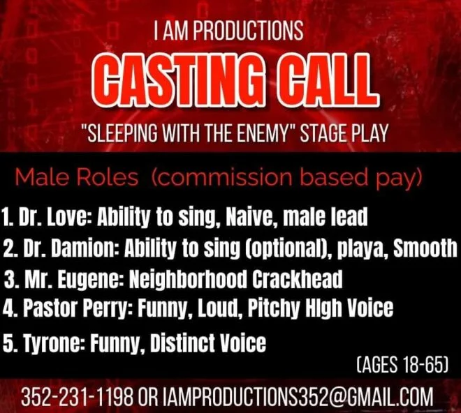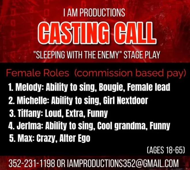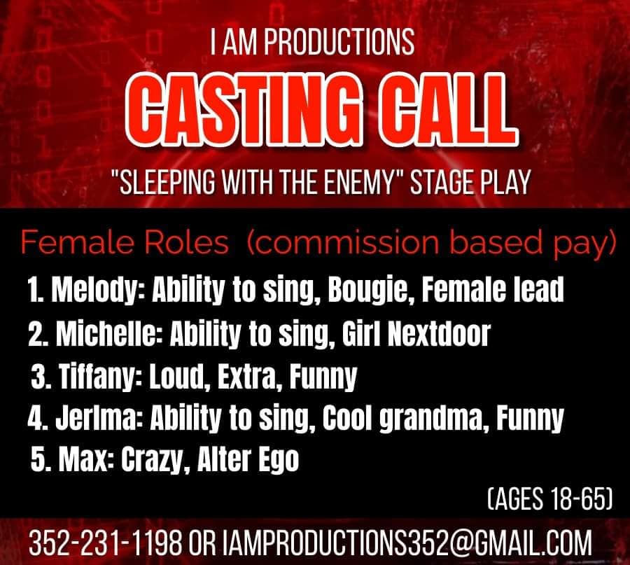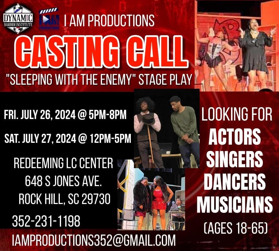 Casting Call for “Sleeping with the Enemy” Stage Play. Open auditions will be held in July in Rock Hill, South Carolina at the Redeeming Life Christian Center.