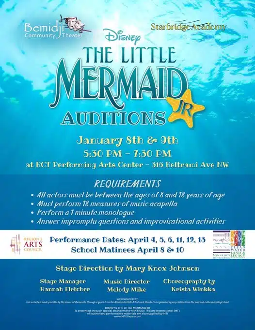 Auditions Open for Disney’s The Little Mermaid Jr. at Bemidji Community Theater