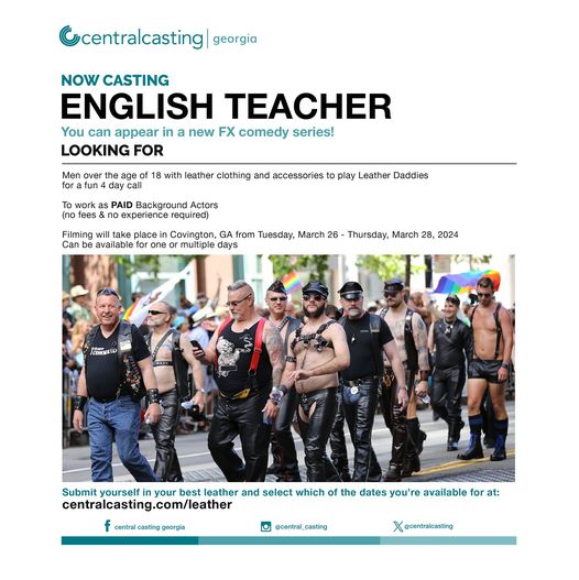 MEN – We are still casting for our fun LEATHER BAR scene filming next week! You can work 1 or all days. Throw on your best leather and send us a pic! (Rate $154/12 + $50 bump)