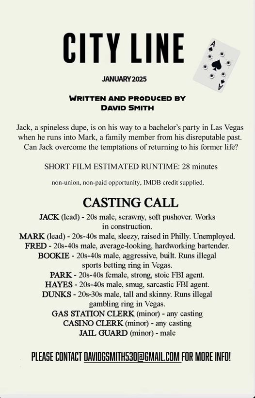 - gambling ring in Vegas. GAS STATION CLERK (minor) – any casting CASINO CLERK (minor) any casting
