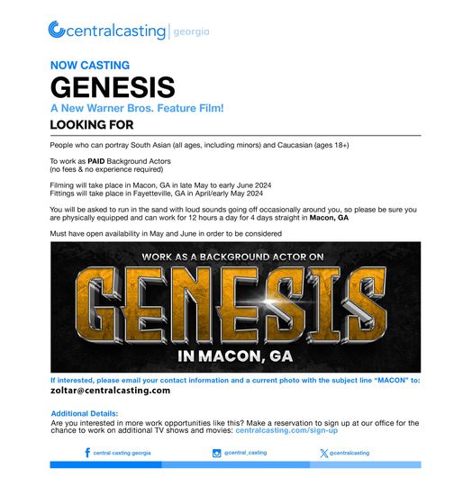 - Georgia Casting Call for Paid Extras who want to be in a Movie