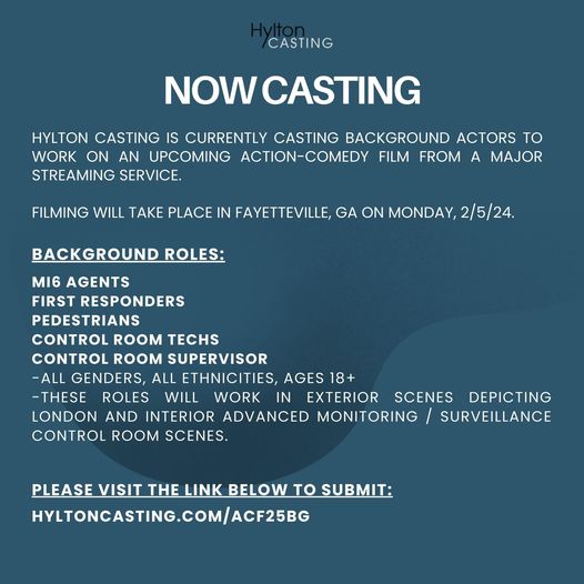 Hylton Casting is currently casting background actors to work in scenes for an upcoming action-comedy film from a major streaming service.