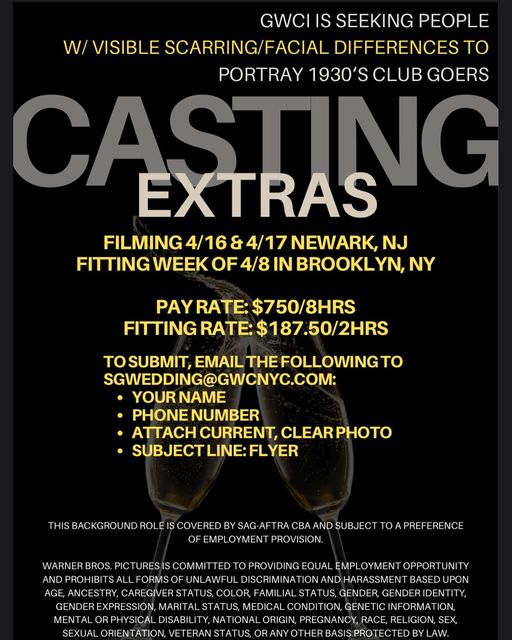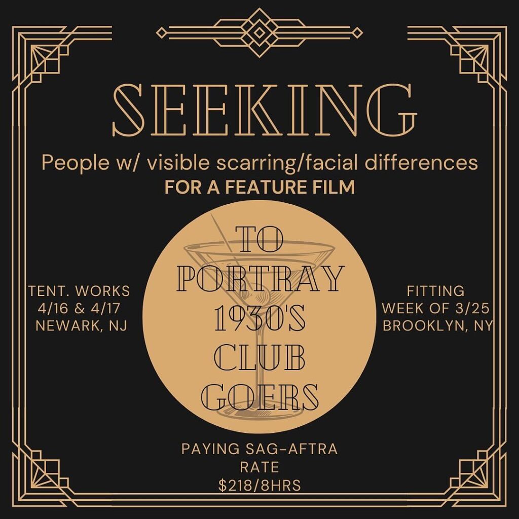 People w/ facial scarring/facial differences to portray 1930s Wild Club Goers for the feature film, Shotgun Wedding.