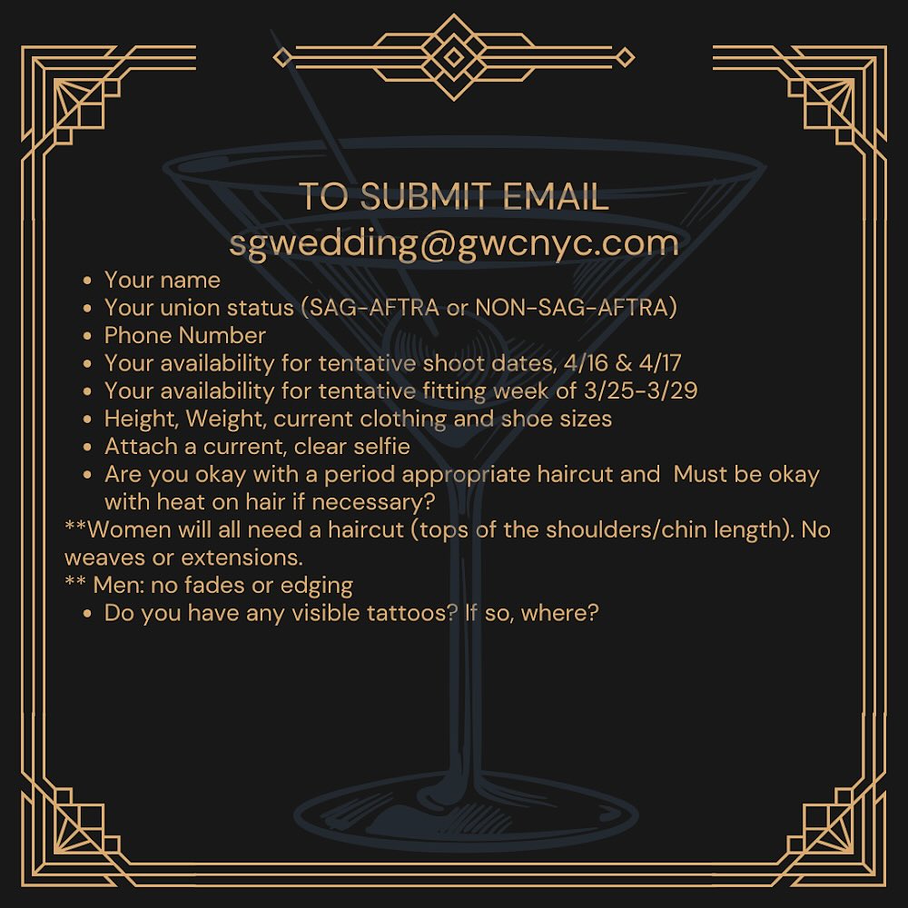 Please note that this is for background roles so you must live in the area in order to be considered.