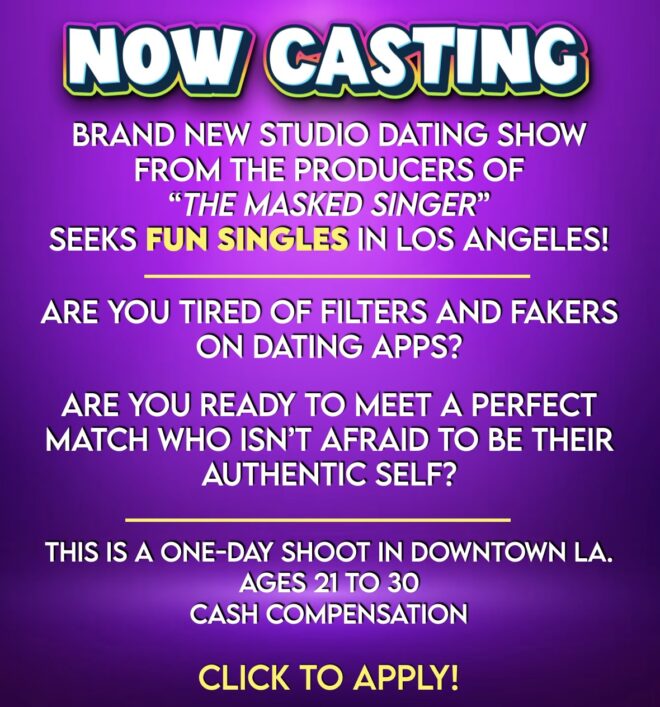 The shoot is a one-day event in downtown Los Angeles, and participants will receive cash compensation. Don’t miss out on this chance to be part of an exciting new show that could change the way you look at love!