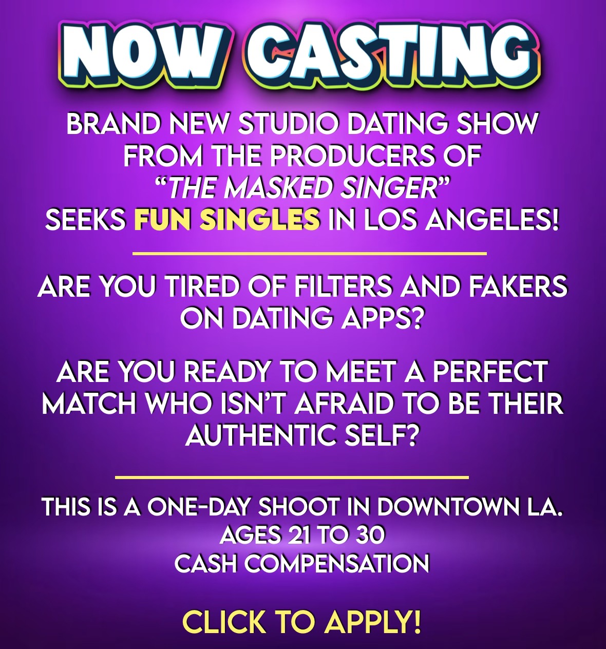 NOW CASTING: EXCITING NEW STUDIO DATING SHOW FROM THE PRODUCERS OF “THE MASKED SINGER”!