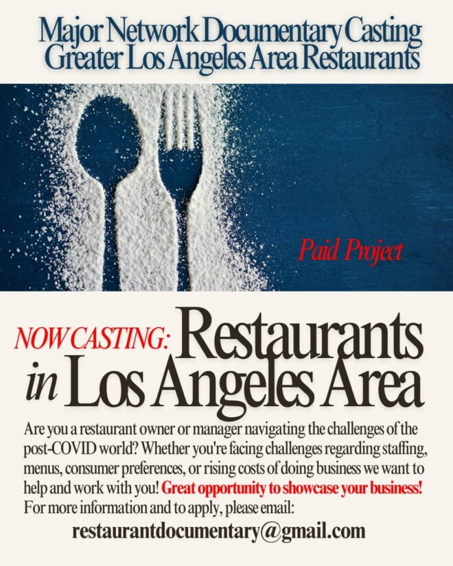 Casting Call: Restaurants in the Los Angeles Area (Paid Opportunity)