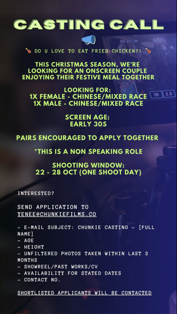 – E-mail Subject: Chunkie Casting – [Your Name]