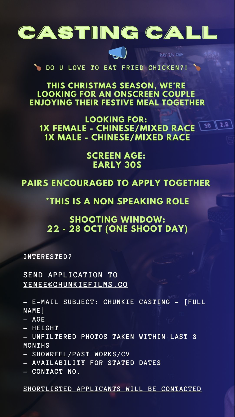 Only shortlisted candidates will be contacted with more information for auditioning. Thank you!