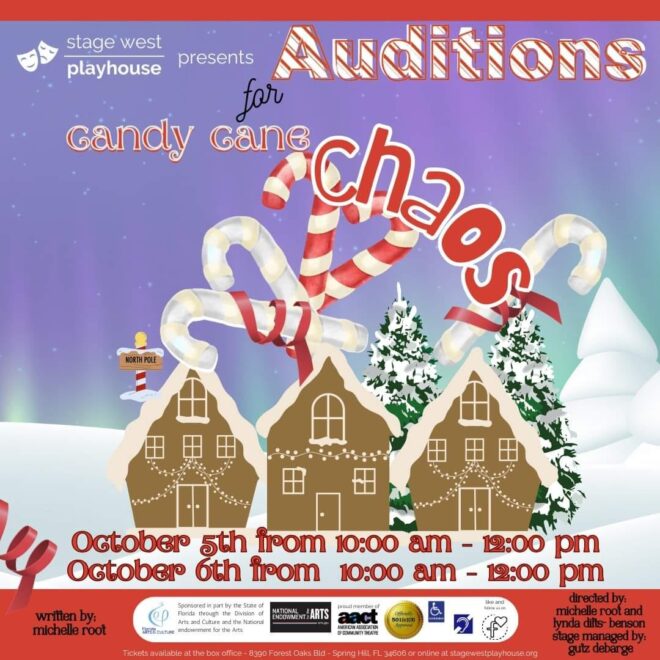 Stage West Playhouse and directors Michelle Root and Lynda Dilts-Benson are excited to announce auditions for Candy Cane Chaos.
