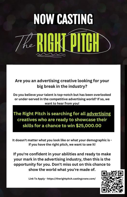 Now Casting Advertising Creatives NATIONWIDE for The Right Pitch.