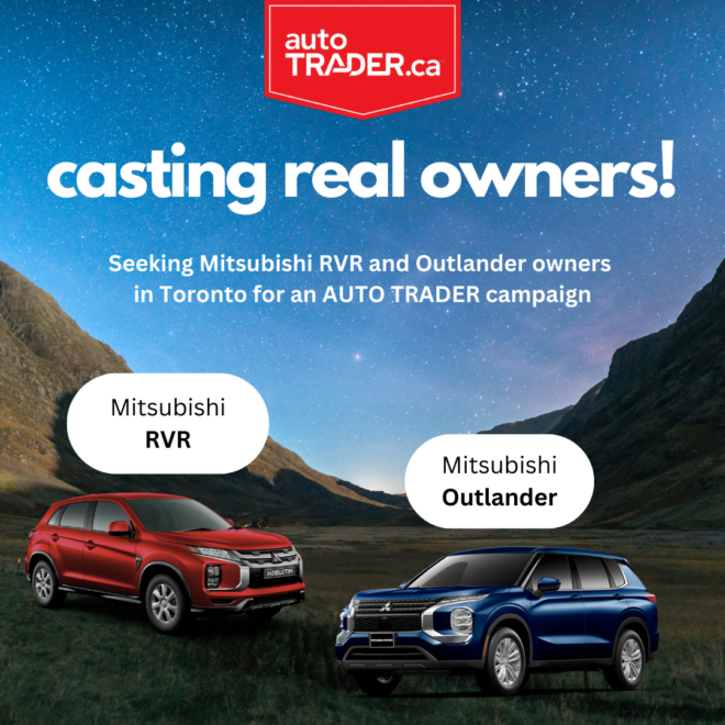 We are seeking Mitsubishi Outlander and Mitsubishi RVR drivers for a campaign filming in Toronto.