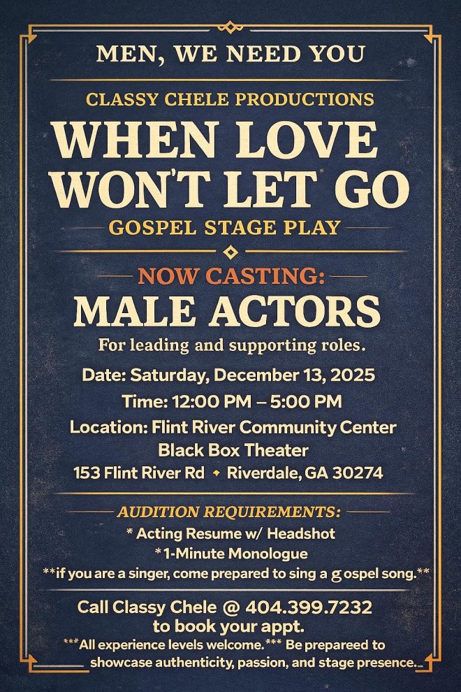 Classy Chele Productions is NOW casting male actors for lead and supporting roles in the upcoming gospel stage play: