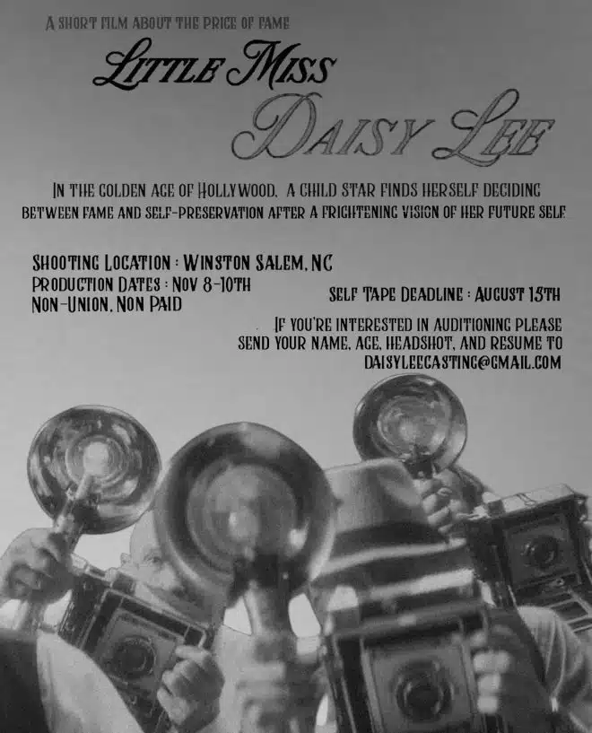 Students at the University of North Carolina School of the Arts (UNCSA) Fourth-Year film Little Miss Daisy Lee has announced an open call for actors local to Winston-Salem, North Carolina.