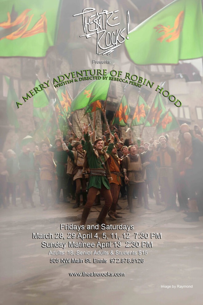 Theatre Rocks! is auditioning for a fun, lighthearted retelling of the class Robin Hood story. Roles (including Little John, Will Scarlet, Alan-a-Dale) are available for adults and youth ages 8 and up. The audition will consist of cold readings from the script. Male actors will be asked to sing. The theatre is located at 505 NW Main St., Ennis, Texas. More information is available at theatrerocks.com.