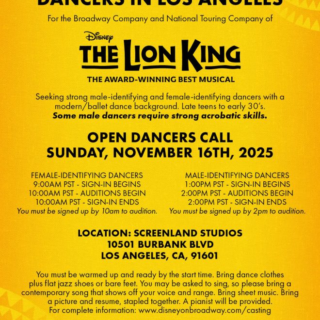 Related – Disney Holding Auditions in Las Vegas for “The Lion King” Dancers