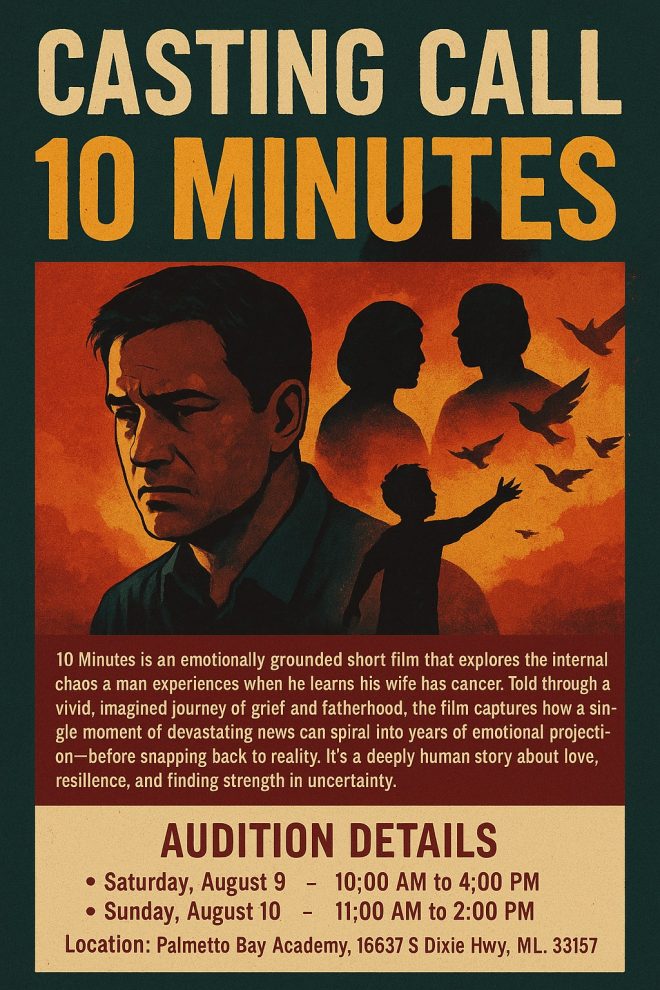 Filmmaker Rene Fornari is holding open auditions in Miami, Florida, for his upcoming short film “10 Minutes”, a dramatic and emotionally driven story set to begin production this December. The project will be submitted to film festivals following its completion and is currently seeking talented local actors for a range of lead and supporting roles.