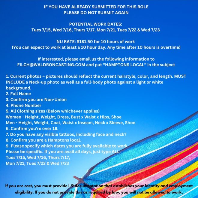 Waldron Casting Seeks Hamptons Locals for Paid TV Background Work