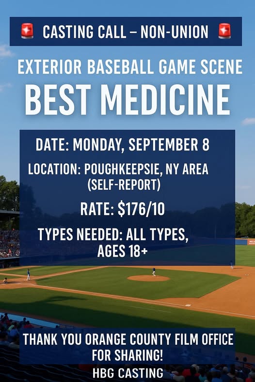 Produced by FOX and filmed in Upstate New York, Best Medicine is casting now through December 2025. Whether you’re a seasoned extra or totally new to the set life, this is a great opportunity to get involved in a major network show.