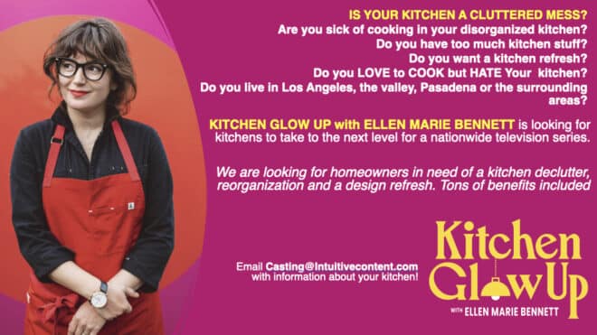KITCHEN GLOW UP WITH ELLEN MARIE BENNETT is looking for kitchens to take to the next level. This is a show that will create a better kitchen experience for you and your family. If interested please email Casting@intuitivecontent.com with information about your kitchen OR fill out the application below.