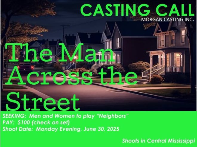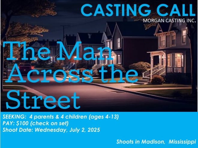 Morgan Casting is seeking to fill the following – please note that you must live in the Madison, Mississippi (Jackson, MA area) as no travel is paid.