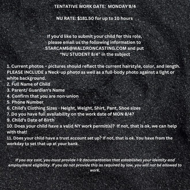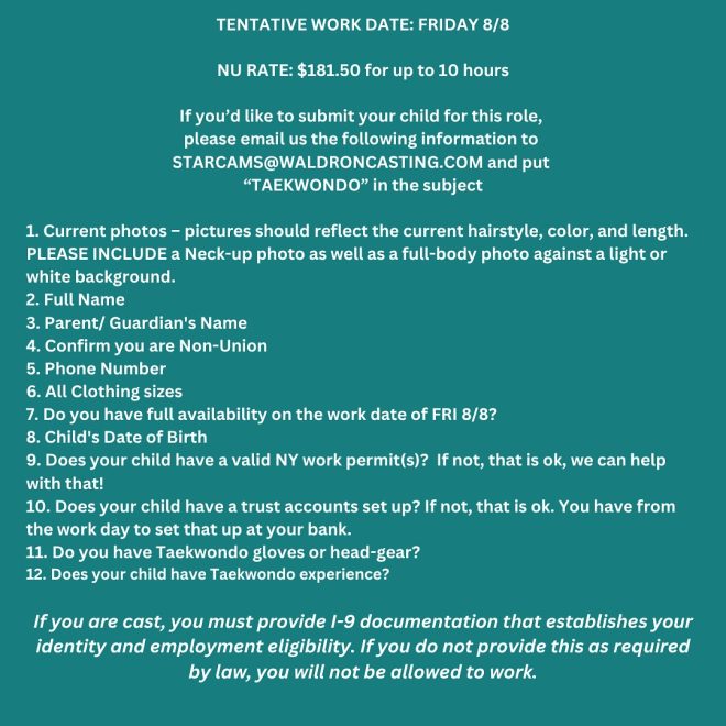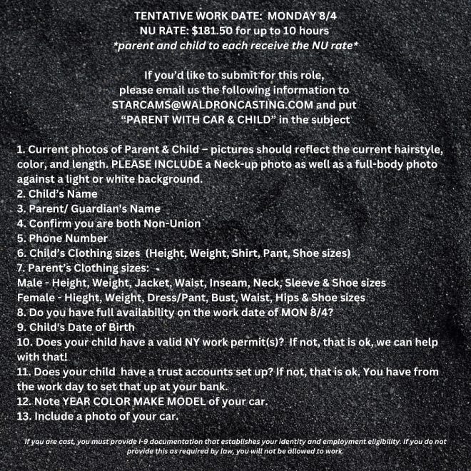 Wanted to appear in a new show filming in the New York City area. A NYC area casting director is seeking locals to work as background actors on the upcoming series STARCAMS.