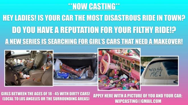 A brand-new television series is on the hunt for women in the Los Angeles area whose cars are in serious need of a makeover. If your car is known as the messiest ride in town, this is your chance to get a complete car transformation — and possibly have some fun on TV while you’re at it!