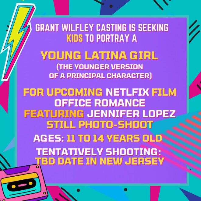 Grant Wilfley Casting is looking for a young Latina girl to portray the younger version of a principal character in the upcoming Netflix film Office Romance, starring Jennifer Lopez. This is a still photo shoot, and selected talent will be featured in the production.