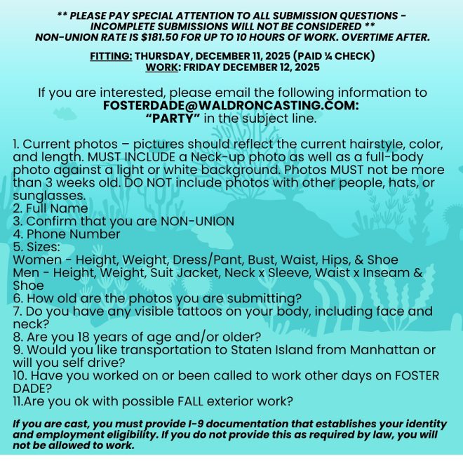 This is a really specific paid background casting notices for Staten Island, New York.