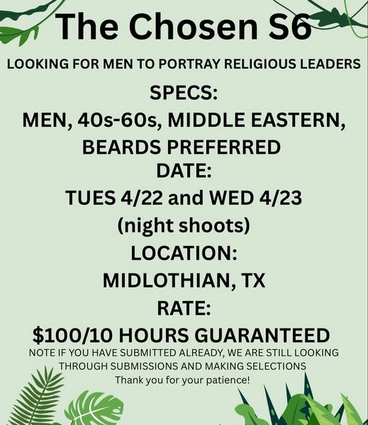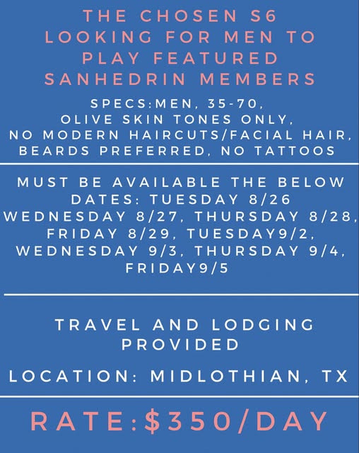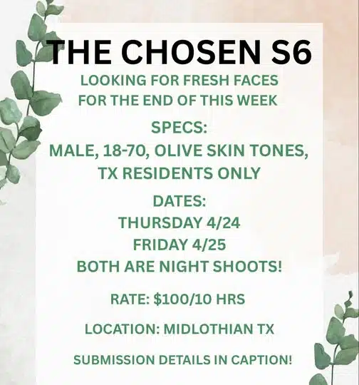 Chosen Season 6 now casting extras in Midland, Texas.
