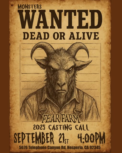 Fear Farm is holding an open casting call for scare actors living in the Hesperia, CA area. The Halloween haunted house attraction will be holding an open call for area locals next month.