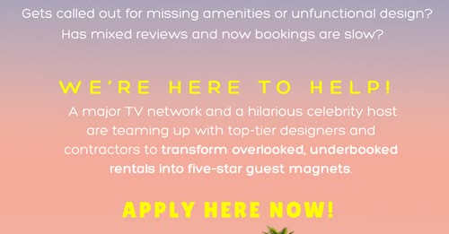 A major TV network has partnered with TeamSheed and Wheelhouse Entertainment on a brand-new short-term rental transformation TV series that will spotlight the real-world challenges of short-term rental ownership and selected homes will receive a FREE, professionally designed makeover from our expert team.