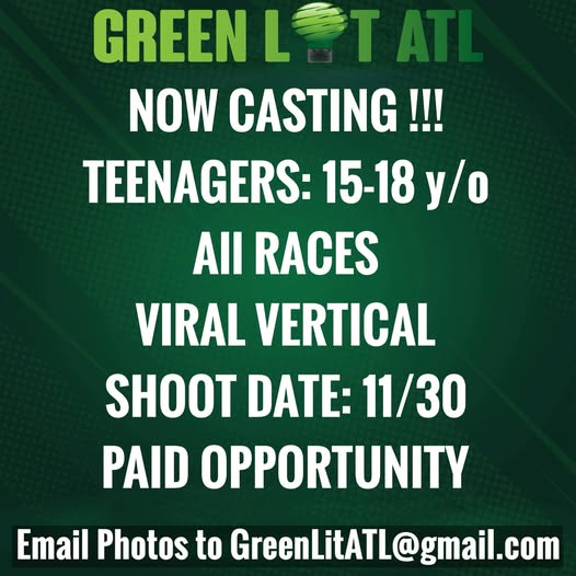 NOW CASTING TEENAGERS (15–18 years old) of all races for a paid viral vertical shoot filming Sunday, 11/30 in Atlanta.