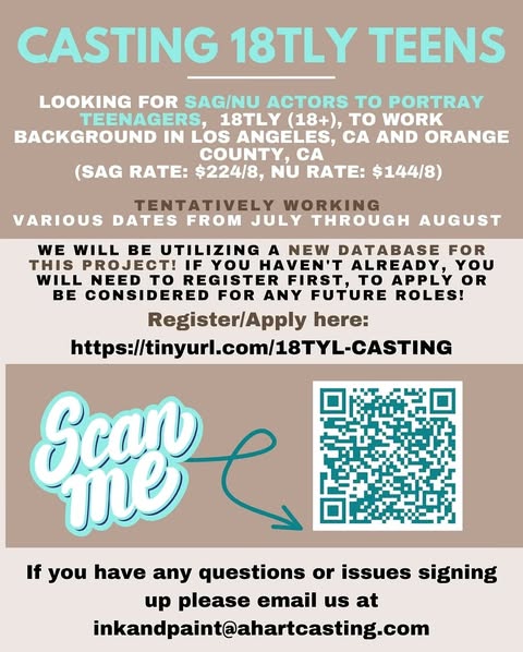 LOOKING FOR SAG/NU ACTORS TO PORTRAY TEENAGERS, 18 To Look Younger (18+), TO WORK BACKGROUND in LOS ANGELES, CA, AND ORANGE COUNTY, CA
