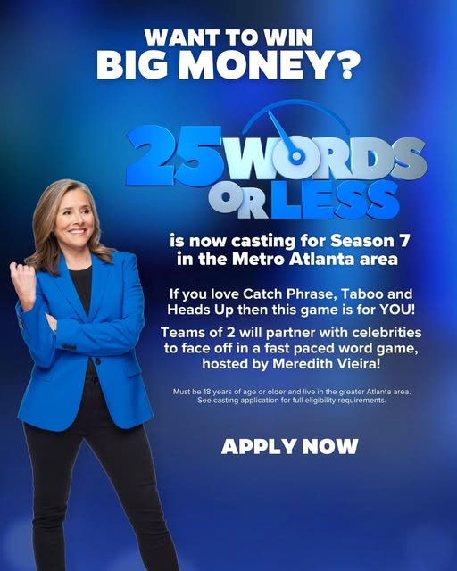 Do you have quick thinking, sharp wordplay, and a teammate who knows you inside and out? The exciting and fast-paced game show 25 Words or Less is now casting energetic and competitive two-person teams for Season 7, and filming will take place right in Atlanta, Georgia!