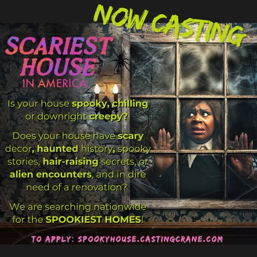 Do you own a spooky home? Does your house have spooky decor, a haunted history, spooky stories, or alien encounters, and in dire need of a renovation?Whether you want to show off your spooky home, or you are in need of a HOME RENOVATION, send me a message, or fill out our application here: spookyhouse.castingcrane.com