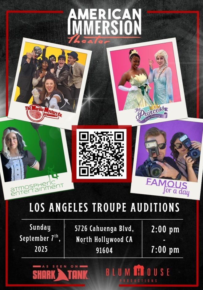 American Immersion Theater is hosting open casting calls in LA that can lead you to your next job. All you need to do is schedule a time to attend an audition to showcase your ability to act along with your improvisation skills. We offer comprehensive training and competitive pay. If we think you are a potential candidate for one of our many character roles, we will contact you and move you along in our process. If you are interested in working with AIT, read on to learn more about our casting calls in Los Angeles.