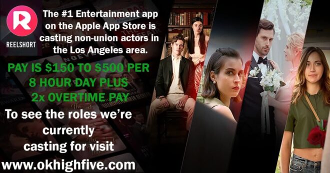 ReelShort, the #1 Entertainment App on the Apple App Store, is seeking non-union actors based in Los Angeles for multiple upcoming productions. No travel accommodations provided—local talent only.