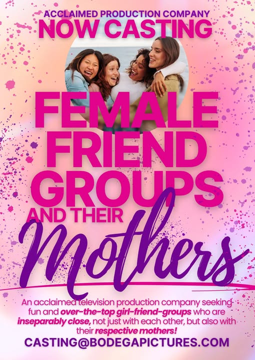 A major television network is currently seeking a lively and outgoing group of best friends who share not only an unbreakable bond with each other but also with their mothers. This new docu-series is searching nationwide for dynamic, charismatic women in their mid-20s to mid-30s who are each incredibly close with their moms.
